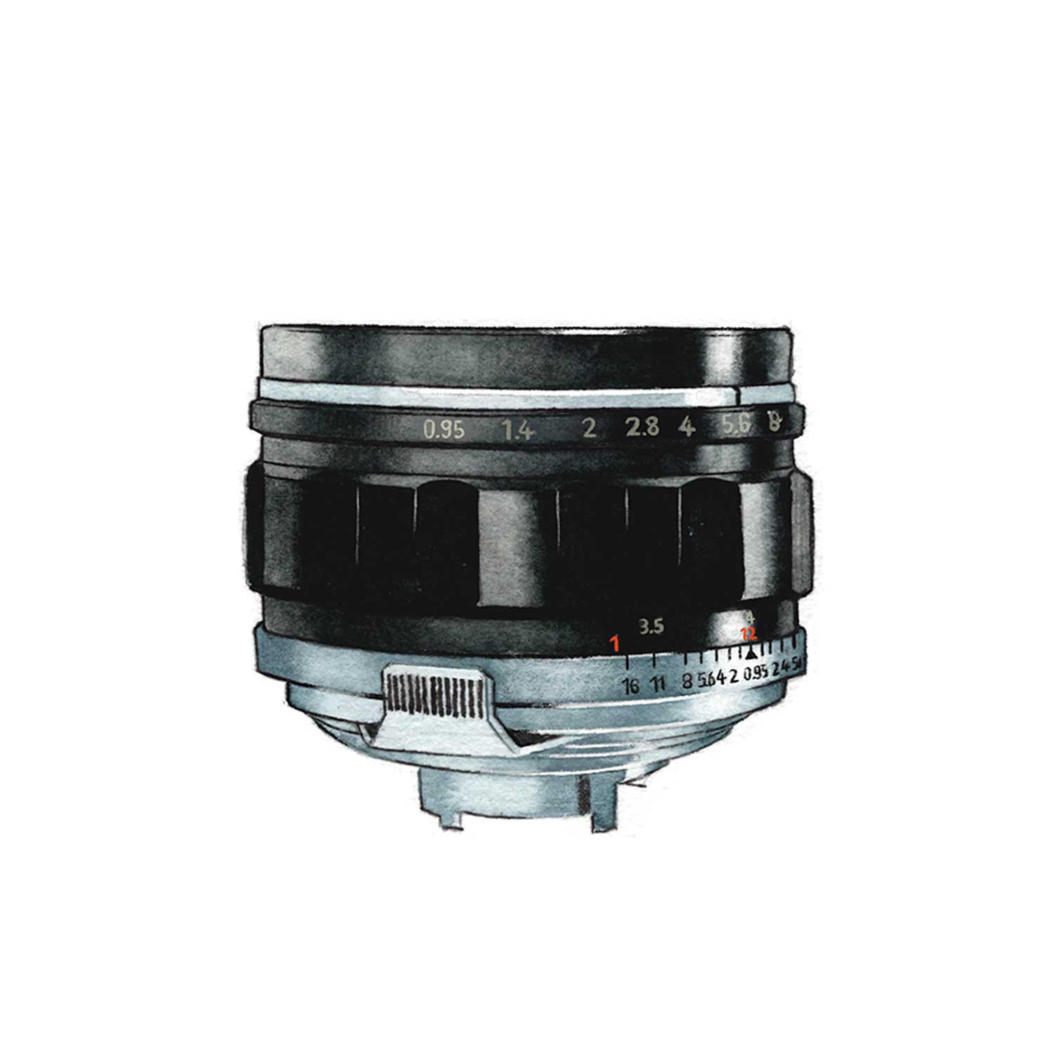 日本雖然最初向德國學習光學技術,但到了 1950 ~ 60 年代,日本的相機產業迅速崛起。這支鏡頭於 1961 年問 世,正是象徵那股氣勢的代表之一。它搶先全球,實現了 當時市售相機鏡頭中的最大光圈 F0.95。如今 F0.95 這個 規格本身已不再令人驚艷,各廠商開始追求更進一步的個 性化表現。有的將殘存像差所帶來的狂野風格視為獨特味 道,有的則致力於追求毫無瑕疵的完美 F0.95鏡頭表現。