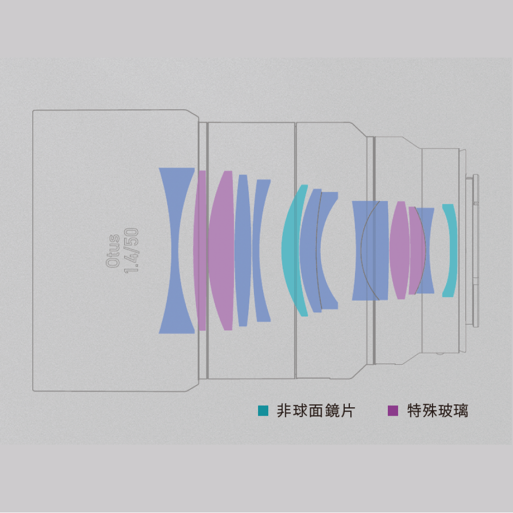這是為無反相機打造的最新鏡頭「Zeiss Otus ML 1.4/50」的結構圖。50mm F1.4 這個規格, 在過去多半由約 7 面鏡片所構成。但這款鏡頭以「性能至上」為理念,奢華地採用多達14 面鏡片的設計來構成。