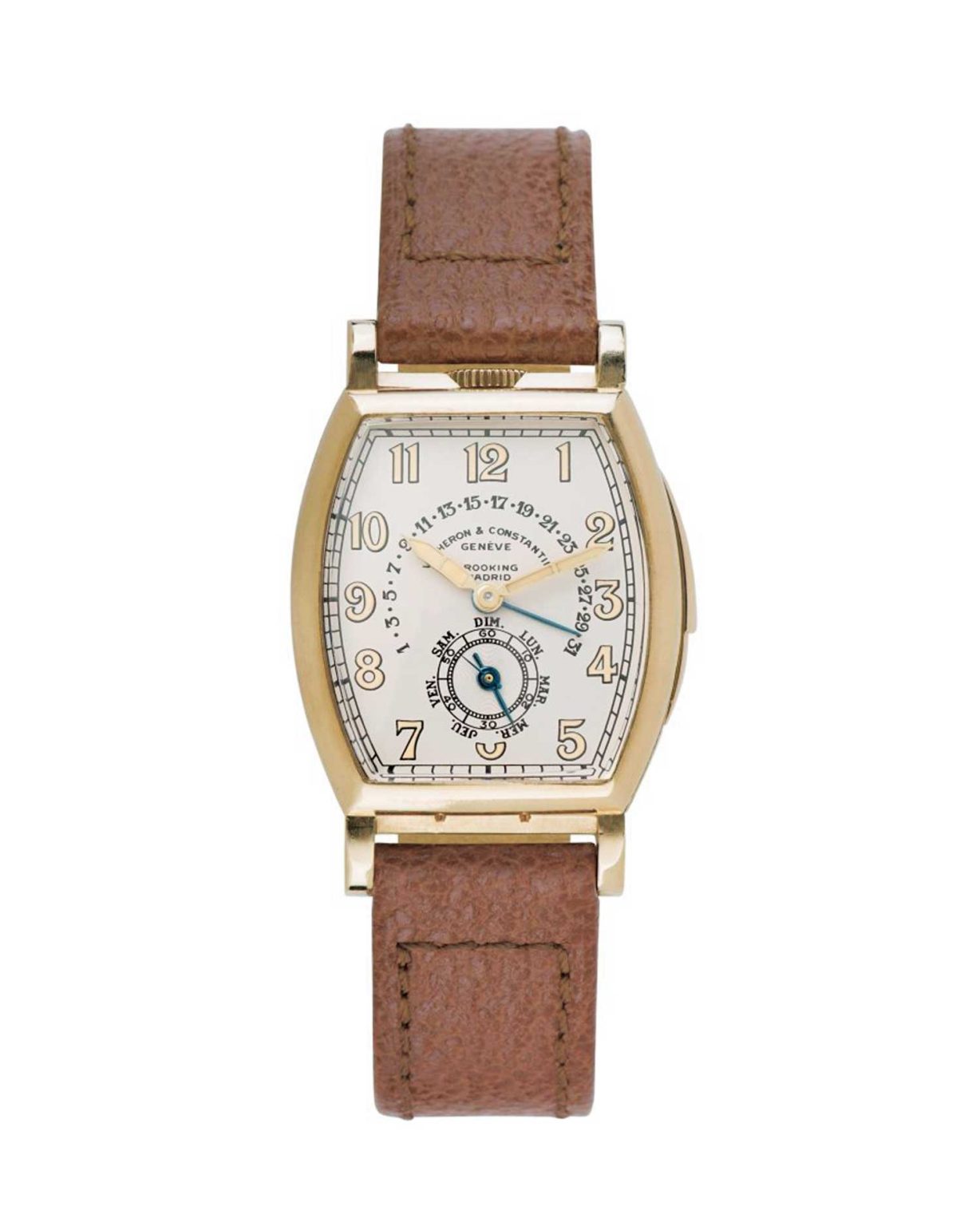 品牌創始人 Jean-Marc Vacheron 於 1755 年打造的第一只懷 錶。銀製錶殼搭配極具裝飾美感的金色指針,時針與分針分 別採用了阿拉伯數字與羅馬數字顯示,強化了視讀性,同時 也展現了以秒為單位的高度準確性。