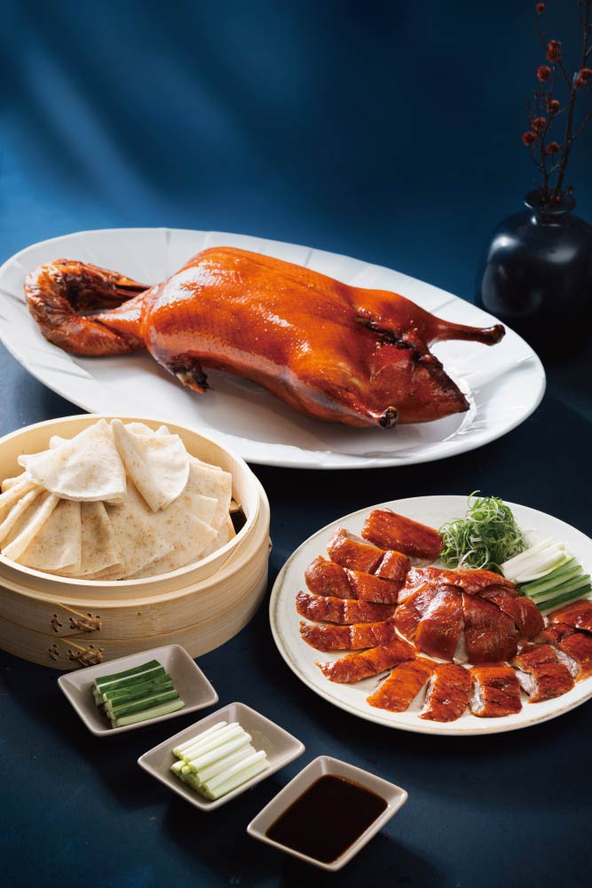 以「經典傳承 × 味覺革新」為品牌哲學,挑戰你對食材料理的想像。其招牌主角——經典片皮烤鴨,嚴選三公斤熟成櫻桃鴨,將鴨皮烤至口感「酥脆香滑」外皮呈現金紅色的油亮色澤,肉質鮮嫩多汁。搭配手工蕎麥潤餅,靈魂蘸醬則加入金棗乾慢火熬煮提味出清爽解膩的口感,讓你每一口都能體驗到層次上的不同口感與傳統和創新的完美融合。