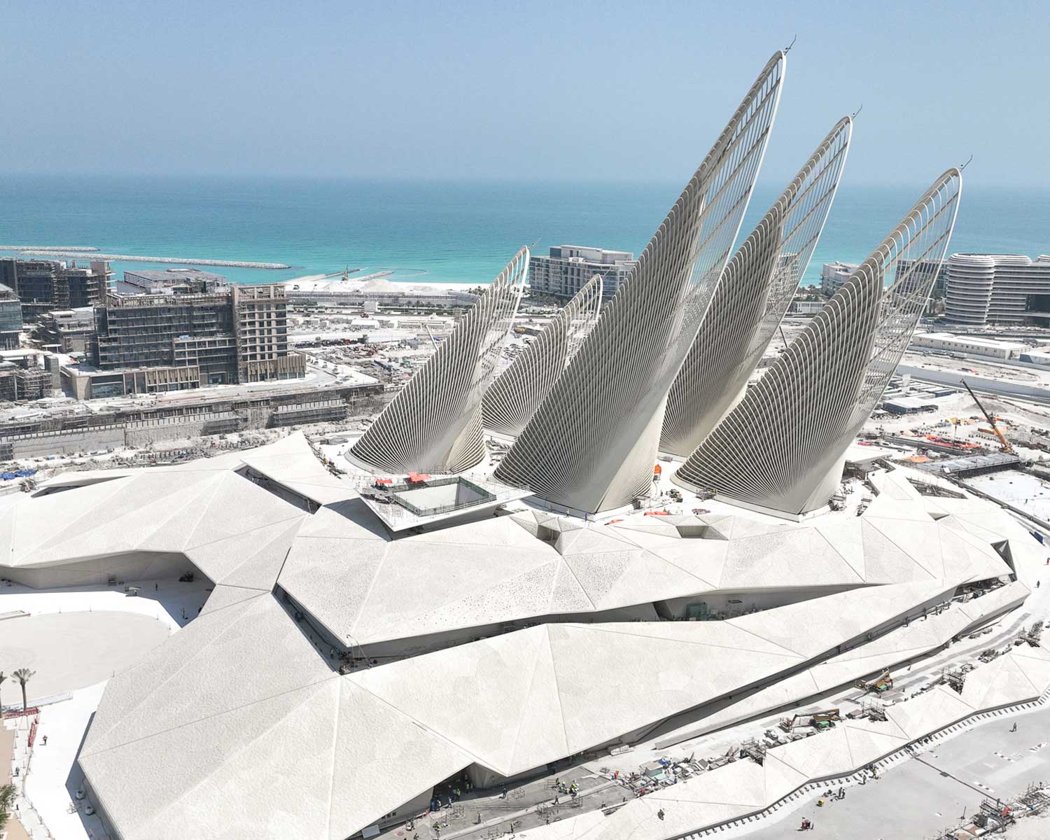 坐落於阿布達比的札耶德國家博物館由Foster + Partners 操刀 建造,不僅是向阿拉伯聯合大公國已故國父Sheikh Zayed bin Sul tan Al Nahyan 致敬,更娓娓述說著阿聯酋自古至今的淵源與故 事。其設計將現代建築的簡潔線條和造型與阿拉伯傳統紋飾元素 巧妙融合,在創新的同時也彰顯著對傳統文化的尊重,打造出一 座蘊含深厚地方特色的文化地標。