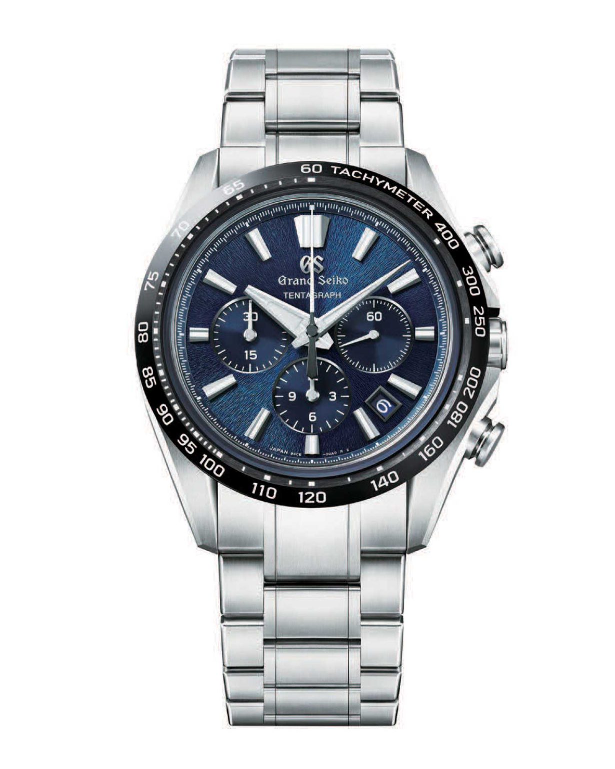 品牌首款機械計時碼錶「Tentagraph」於 2023 年震撼亮相。搭載 高振頻機芯 9SC5,能精準測量至1/10秒。錶盤設計則以「Grand Seiko Studio 雫石」所望見的雄偉岩手山為靈感,呈現宛如山貌 般的立體起伏紋理,氣勢非凡。搭載自動上鍊機芯、亮面鈦金屬 錶殼與錶帶、錶徑 43.2mm、動力儲存約 72 小時、透明錶背、 10氣壓防水。