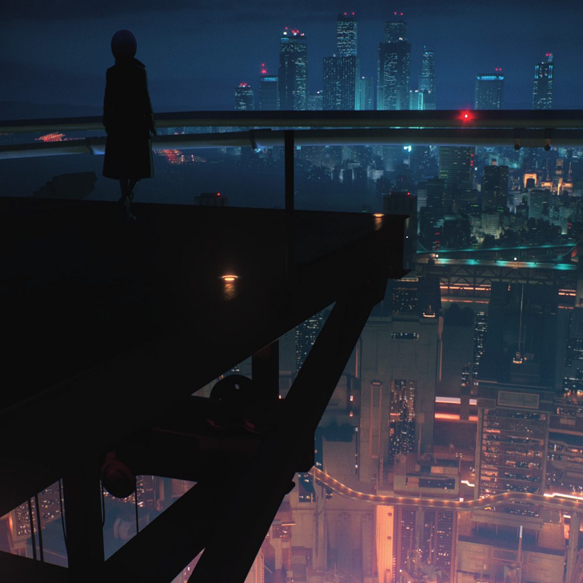 由神山健治與荒牧伸志執導、2020年於Netflix公開的『攻殼機動隊SAC_2045』,是系列首部全3DCG的作品。在片尾,素子留下那句經典名言:「網路真是廣大啊……」,隨即縱身躍入眼前展開的城市景觀。這場落幕畫面,正是向原作漫畫第一集結尾致敬的經典橋段。