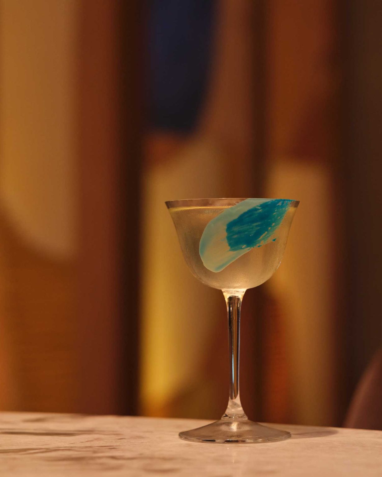 最引人注目的,或許是牆上的藝術裝飾——法國藝術家以台灣藍鵲為靈感所繪的壁畫,與金色細節及溫潤木質呼應,在靜謐中流轉出動態的詩意。這裡不僅是一間餐廳,更像是一個讓人卸下鋼筋叢林緊繃感的沙龍空間。