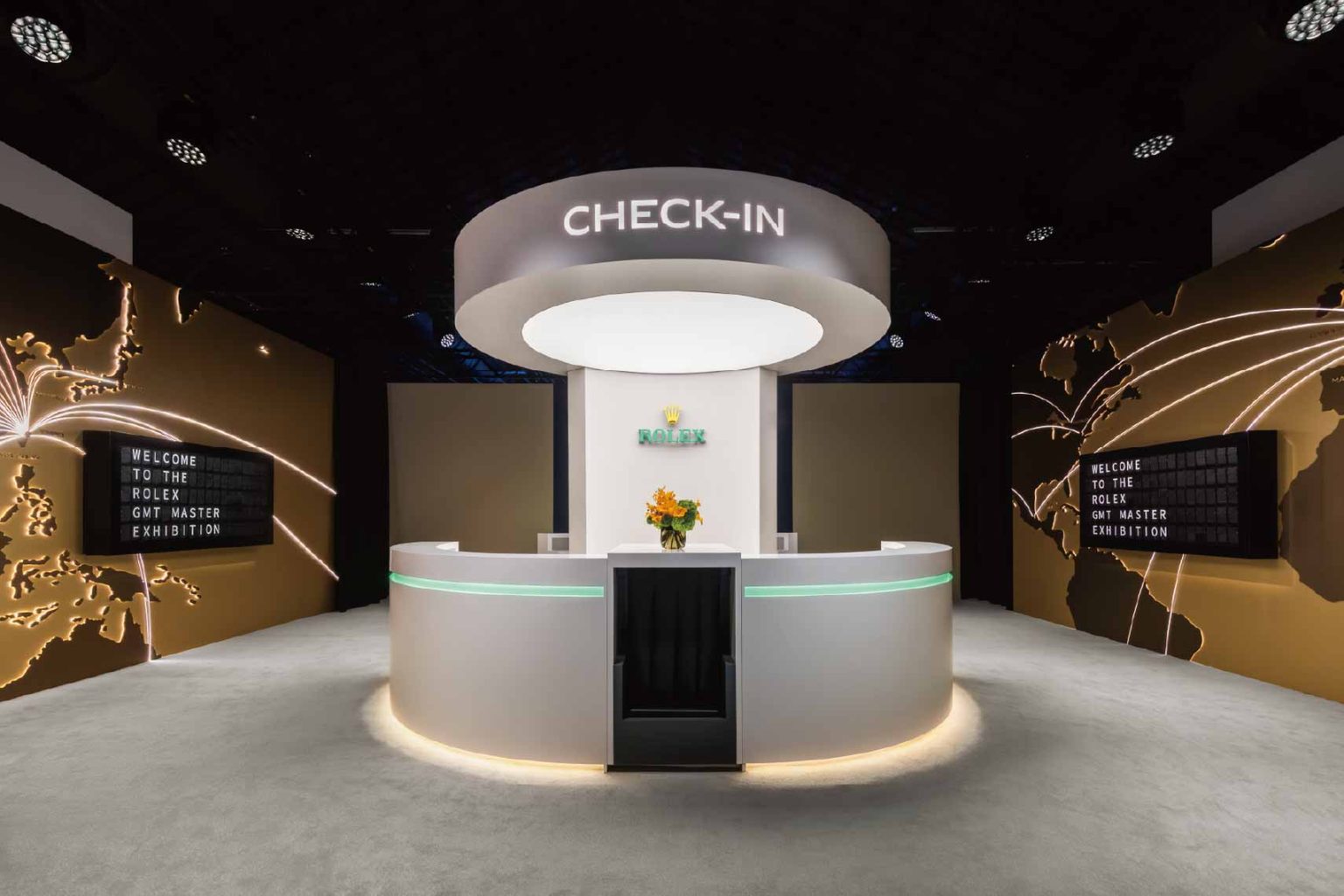 勞力士 GMT-Master「穿越時區」展覽入口 Check-in 櫃台。