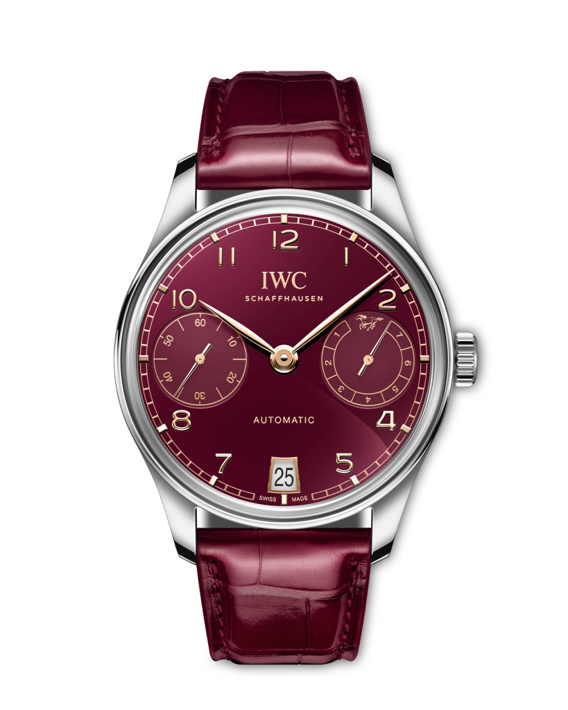 為迎接即將到來的馬年,沙夫豪森 IWC 萬國錶延續生肖主題腕錶傳統,推出葡萄牙系列自動腕錶 42 馬年特 別版,全球限量 500 枚,採用直徑 42 毫米的精鋼錶殼,配以酒紅色錶盤。在中國傳統文化中,馬象徵蓬勃的 生命力與積極進取的精神,也被視為成功與好運的開端。酒紅色錶盤靈感源自農曆新年常見的吉祥紅色調, 呈現葡萄牙系列標誌性的對稱設計,9 點鐘位置的小秒針與 3 點鐘位置的動力儲備顯示,承襲首款葡萄牙系 列自動腕錶的經典佈局。金色指針、羅馬數字與時標與濃郁錶盤色澤交相輝映,6 點鐘位置設有低調日期窗。 腕錶搭載 IWC 萬國錶自製 52011 型機芯,配備高效能比勒頓上鏈系統與雙發條盒,可提供長達 168 小時動力 儲備。鍍金擺陀特別設計為駿馬奔騰造型,透過藍寶石玻璃底蓋清晰可見,寓意農曆新年的生機與活力。腕 錶隨附黑色與酒紅色鱷魚皮錶帶,搭配精鋼折疊錶扣,展現迎接新年的優雅與喜氣。