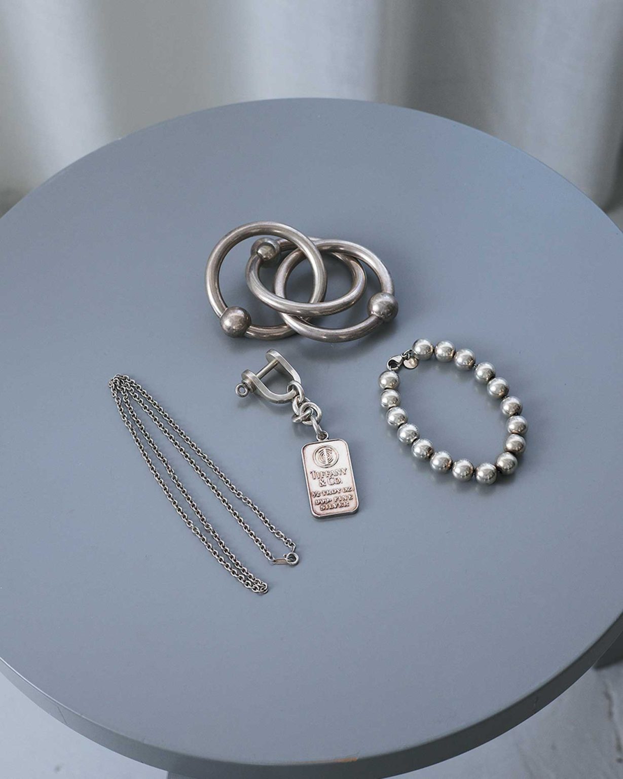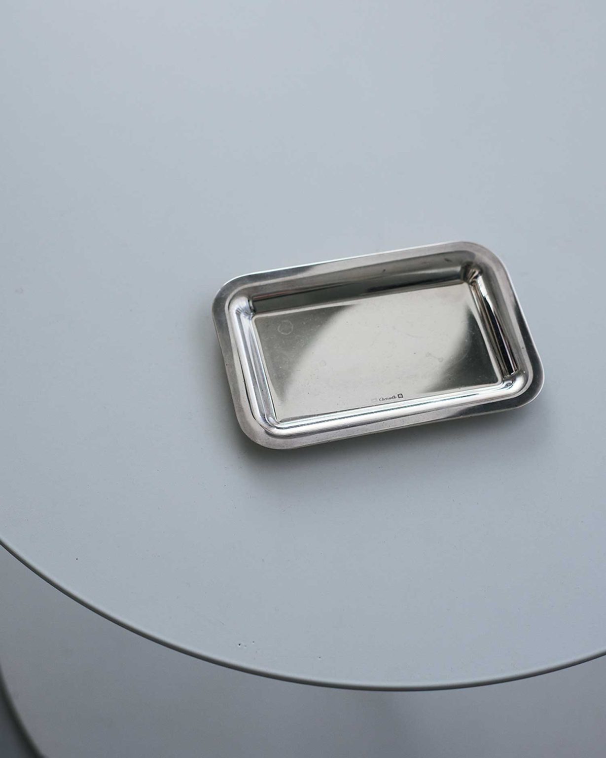 在跳蚤市場發現的銀製小巧托盤。尺寸雖然僅有如 名片大小,其邊緣微微隆起的設計、以及其堅固的 做工,是竹內特別喜愛的原因。