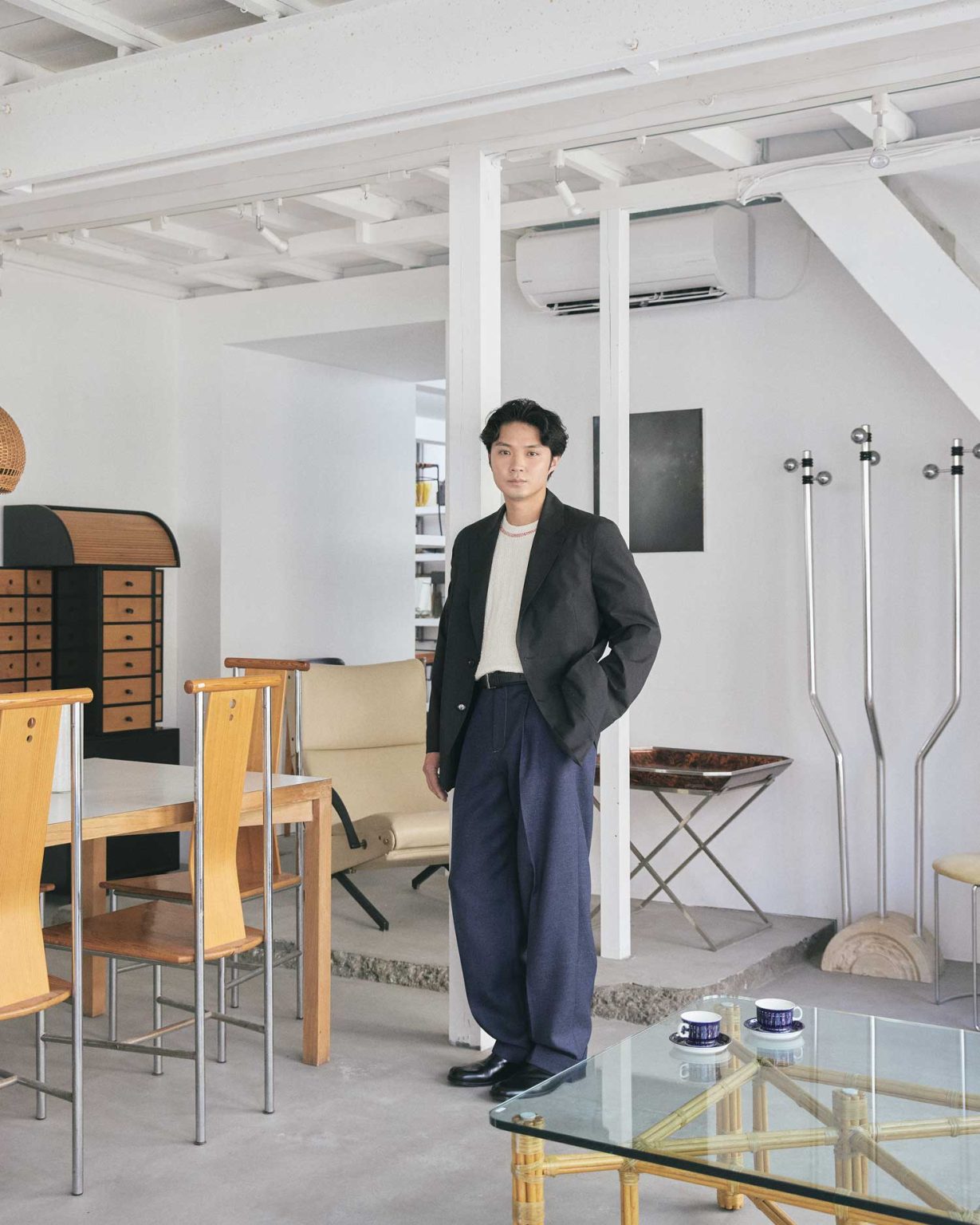 造訪全新改裝後店舖的,是近年來深深迷上Vintage家具獨特魅力、私底下也經常光顧「stoop」選購心頭好物的演員磯村勇斗。剛好就在幾週前,磯村才在這裡購入了一張矮桌。不過據他說,在店裡仍有許多他心中早已暗暗鎖定、準備在將來入手的物品。